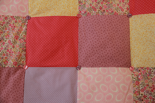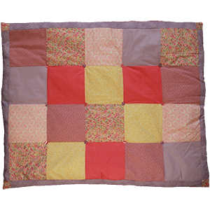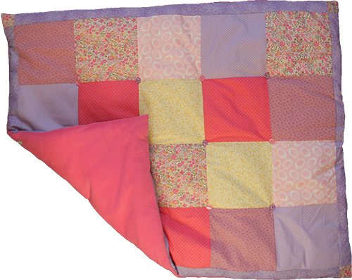 Dimensions 90*110cm, dessus 100% coton, tissus liberty, japonais, patchwork. Dessous: tissu polaire. Boutons fantaisie.